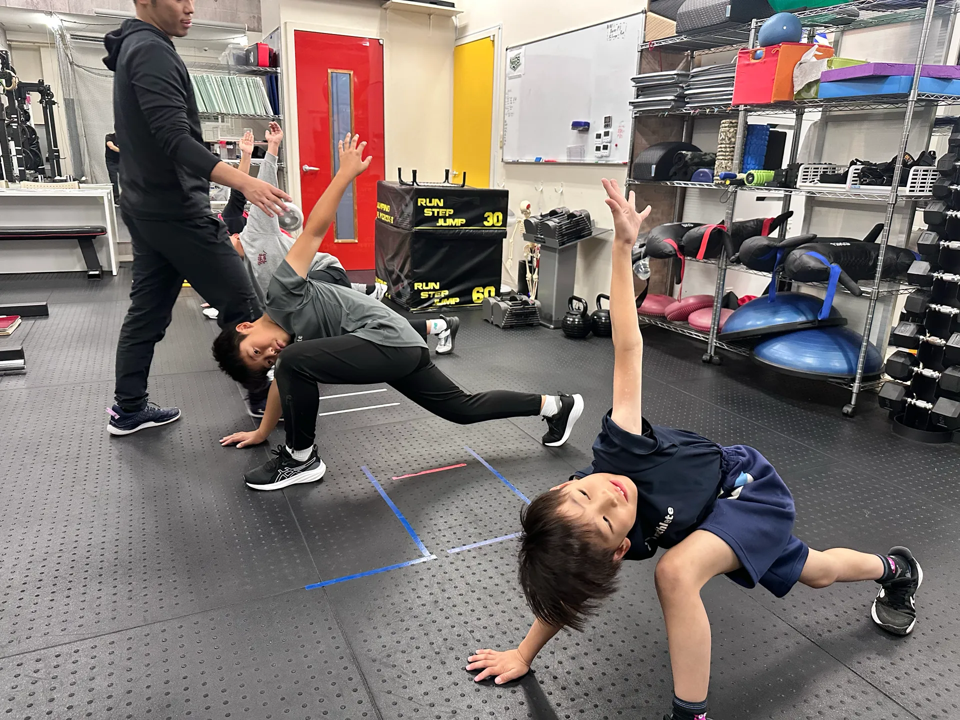 育成年代に必要な基礎体力・柔軟性・バランスを養うグループトレーニングを実施。
